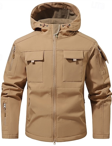 Per uomo Giacca da Esterno Giacca softshell Giacca da Escursionismo Vacanza Quotidiano Antivento Resistente all'acqua Tasca Autunno Inverno Semplice Mimetico Moda Classico Con Cappuccio Regolare