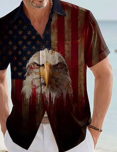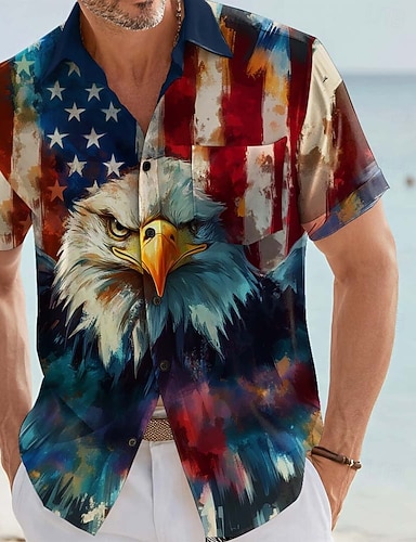 Giornata dell'indipendenza Per uomo Bandiera Americana 4 luglio, 250° anniversario degli Stati Uniti Aquila Camicia Camicia Estiva Camicia con Bottoni Manica Corta Moda Casual Ferie Estate Primavera