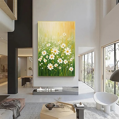 dipinto a olio dipinto a mano di prato di fiori selvatici su tela campo di margherite strutturato arte murale arte murale floreale primaverile opera d'arte naturalistica dipinta a mano arte murale per