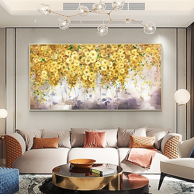 pittura a olio fatta a mano su tela decorazione artistica da parete originale pittura floreale gialla pittura floreale astratta per la decorazione domestica con cornice allungata/senza cornice interna