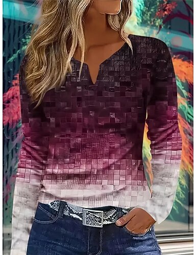 Per donna Maglietta Stampato Grafico Sfumatura Astratto Vintage Elegante Classico Manica Lunga Scollo a V Collo a V Top Regolari Quotidiano Weekend Blu Rosa Rosso Primavera Autunno Inverno