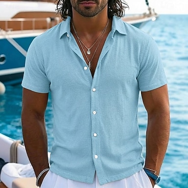 Per uomo Camicia Camicia di lino Camicia Estiva Camicia da Spiaggia Camicia hawaiana estiva Tinta unica Casuale Quotidiano Nero Bianco Verde chiaro Rosa Manica Corta Colletto Primavera & Estate Estate