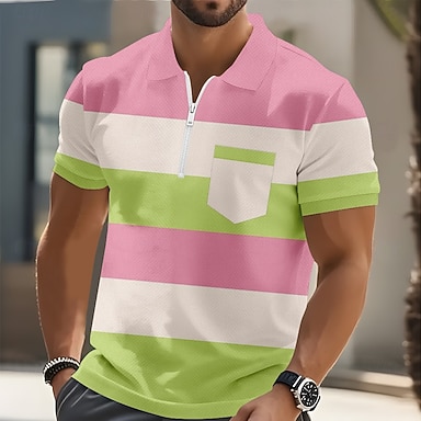 Per uomo Blocco di colori Polo Manica Corta Magliette polo Camicie con Colletto Casual Scuola All'aperto Abbigliamento quotidiano Stampa 3D Estate Rosa