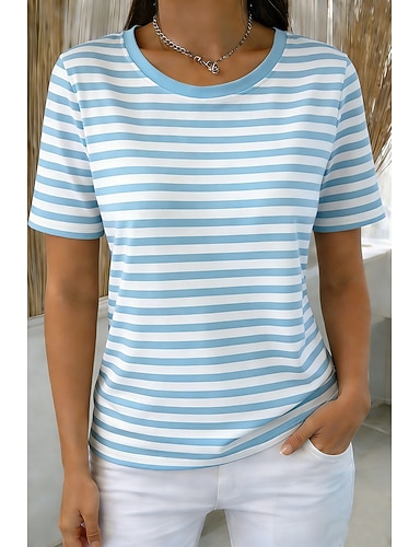 Per donna Maglietta Stampato A strisce Grafico A righe Elegante Classico Casual Manica Corta Girocollo Top Regolari Quotidiano Blu Nero Rosa Verde Cachi Estate Primavera