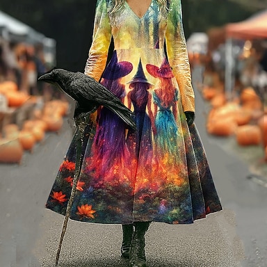 Abito Midi da Donna V Collo Maniche Lunghe Kaftan Leggero Comodo A Line Abito Casual Boho Uscita Grafica Maniche Lunghe V Collo Giallo Rosso Off-white Khaki