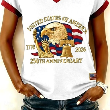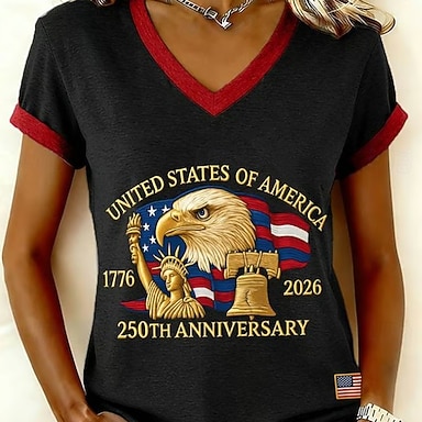Giorno dell'Indipendenza Americana Per donna Maglietta Stampato Grafico Bandiera Vintage Elegante Classico Manica Corta Scollo a V Top Regolari Quotidiano Blu Nero Bianco Rosso Estate Primavera