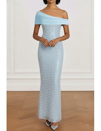 Tubino Colonna Lunghezza al pavimento Lunghezza alla caviglia Perline ricamate Abito Formale Abito da madre della sposa Abiti da Cocktail Abiti da festa Elegante Vintage Brillanti Senza Maniche Senza
