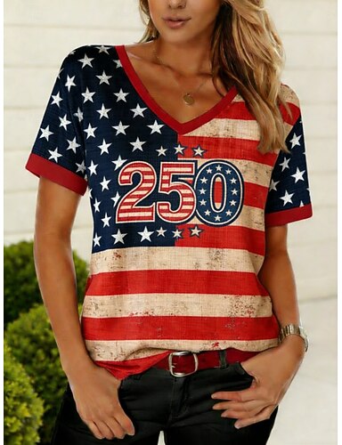 Giorno dell'Indipendenza Americana Per donna Maglietta Stampato Grafico Bandiera Elegante Classico Casual Manica Corta Scollo a V Top Regolari Quotidiano Uscire Weekend Blu Rosso Rosso / blu Estate