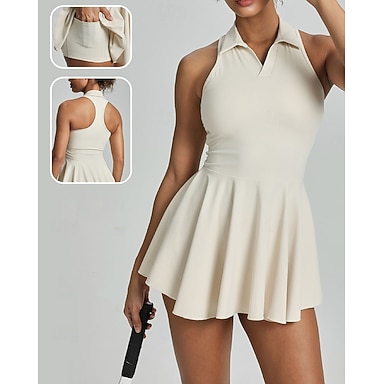 Per donna Tinta unita Abito da tennis Gonne da tennis con pantaloncini Abito sportivo Senza Maniche Tasca Incrociato dietro Assorbimento degli urti Traspirante Tennis Golf Corsa Colletto a Camicia