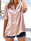 Per donna Camicia camicetta di raso Camicia elegante Tinta unica Semplice Vacanza Vintage Moda Manica Corta Scollo a V Top Regolari Quotidiano Abbigliamento casual alla moda Lavoro Blu Nero Rosa