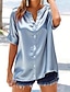 Per donna Camicia camicetta di raso Camicia elegante Camicia con Bottoni Tinta unica Semplice Vacanza Vintage Moda Manica Corta Scollo a V Top Regolari Quotidiano Abbigliamento casual alla moda Lavoro