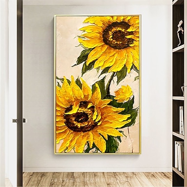 Pittura A Olio Fatta A Mano Dipinta A Mano Arte Della Parete Girasoli Astratti Pittura Su Tela Decorazione Della Casa Decor Telaio Allungato Pronto Da Appendere