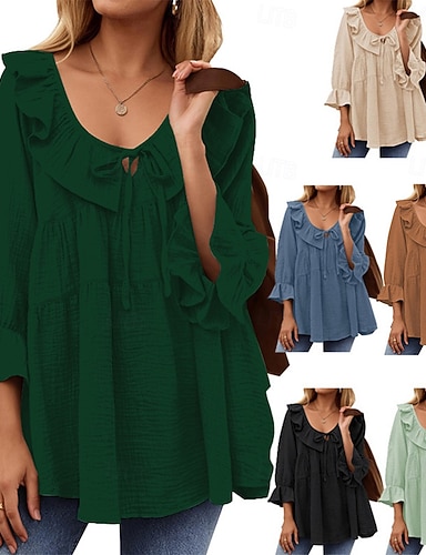 Per donna Camicia elegante Blusa Semplice Elegante Vintage Quotidiano Manica Lunga Mezza Manica Manica a Volant Girocollo Top Regolari Quotidiano All'aperto Ufficio Blu (con cintura) Estate Primavera