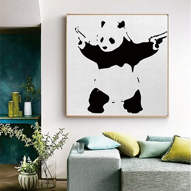 dipinto a mano dipinto a olio di arte della parete astratto panda nero figura decorazione della casa arredamento tela arrotolata senza cornice non allungata