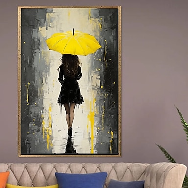 dipinto a mano donna su tela ombrello giallo arte astratta decorazione camera da ragazza opera d'arte poster su tela arte da parete decorazione per la casa arte da parete