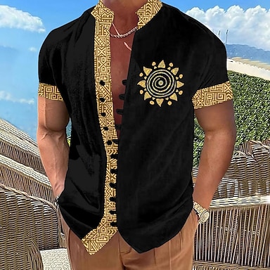 Per uomo Etnico Stampa Sudoccidentale Camicia con Bottoni Camicie Stampate Manica Corta Hawaiano Resort Vacanza Ferie Abbigliamento quotidiano Estate Colletto Mao Stampato Bottonato Nero