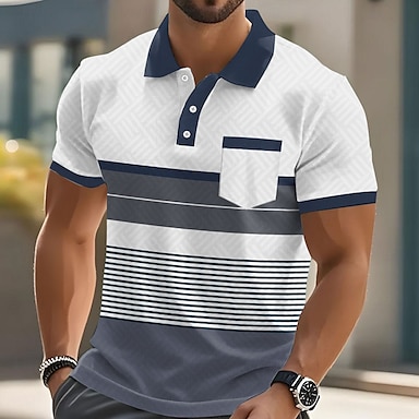 Per uomo A righe Polo Manica Corta Magliette polo Camicie con Colletto Business Casual All'aperto Athleisure Abbigliamento quotidiano Tasca Stampa 3D Bottoni Estate Blu Marrone Verde