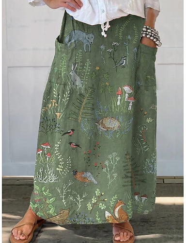 Gonne Maxi Casual da Donna in Lino Similare a Vita Alta Floreale Inelastica Quotidianamente Vacanza Blu Bianco Arancione Verde Estate Poliestere