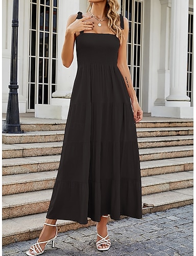 Per donna Abito Midi Vestito Casual Tubino Abito Sottoveste Elegante Moda Moderno All'aperto Vacanza Uscire Vestibilità regolare Semplice Senza Maniche Collo quadrato Nero Rosa Rosso Verde Estate