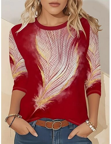 Per donna Maglietta Stampato Grafico Astratto Vintage Moda Elegante Manica Lunga Girocollo Top Regolari Quotidiano Weekend Rosso Estate Primavera Autunno