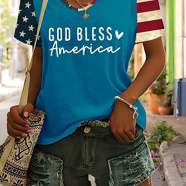 Festa dell'Indipendenza Maglietta Patriottica da Donna Stampa Grafica Bandiera Vintage Elegante Classica Maniche Corte Collo a V Tops Regolari Giornaliero Stampa Blu Estate Primavera Autunno