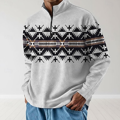 Per uomo Tribale Felpa Etnico Vintage Retrò Manica Lunga Collo Alto All'aperto Sport all'Aperto Blu Verde Cachi Cerniera Zip a un quarto Autunno Inverno progettista S M L XL XXL 3XL
