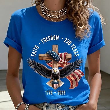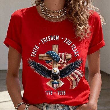 Giorno dell'Indipendenza Maglietta Patriottica da Donna Stampa Grafica Lettera Bandiera Americana Elegante Classico Casual Manica Corta Collo Tondo Regolari Top Da Giorno Bianca Rossa Bianca Estate
