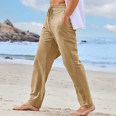 Per uomo Pantaloni di lino Pantaloni Pantaloni estivi Pantaloni da spiaggia A cordoncino Vita elastica Gamba dritta Liscio Comfort Traspirante Informale Giornaliero Per eventi Di tendenza Classico