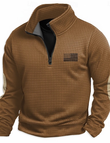 Per uomo Top a Maglia a Coste Testurizzato Casuale Streetwear Bavero Manica Lunga Essenziale Moderno Semplice Cerniera Bottoni Primavera Autunno Tutte le stagioni Vestibilità regolare Blu Bianco Blu