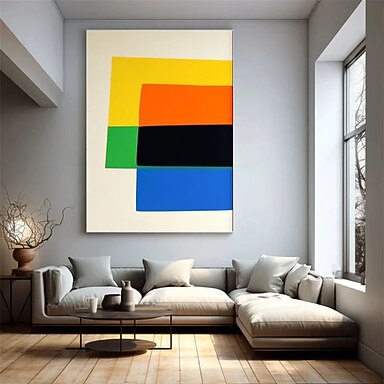 dipinto a mano minimalista a colori misti dipinto a olio collage di blocchi fatto a mano dipinto da cucina astratto geometrico arte moderna giallo arancione verde blu nero poster arte regalo di Natale