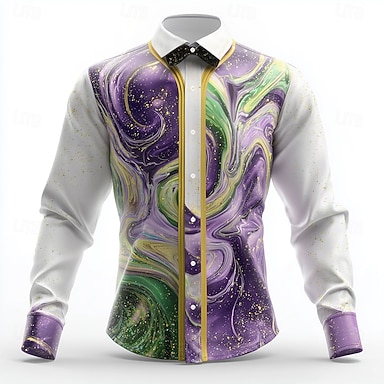 Martedì grasso Per uomo Motivo Geometrico Carnevale Colletto finto e design del vestito Camicia Camicia con Bottoni Manica Lunga Vintage Retrò Feste Ferie Primavera Autunno Collo ripiegato Stampa 3D