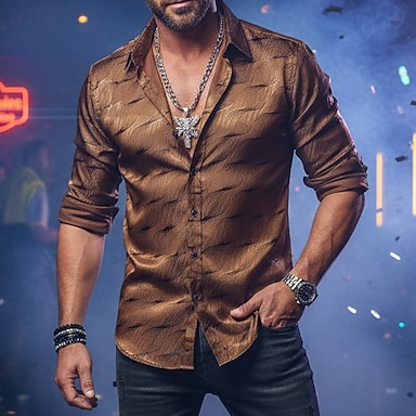 Per uomo Camicia Camicia casual Camicia con Bottoni Camicia da Ballo Nero Vino Viola Oro Manica Lunga Semplice Testurizzato Bavero Feste Quotidiano Jacquard Abbigliamento Moda Elegante casual