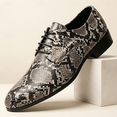 Scarpe Oxford da uomo bianche e nere con stampa pitonata, allacciate, eleganti e formali, perfette per matrimoni, banchetti, feste, balli di fine anno, spettacoli teatrali e serate eleganti.
