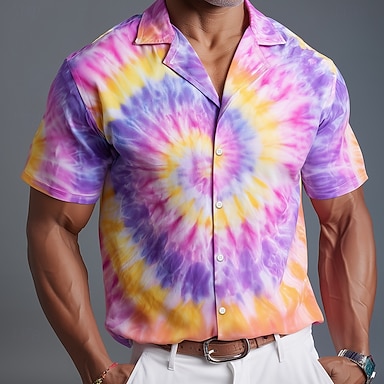 Per uomo Camicia Camicie Pop art Feste Giornaliero Nero Viola Verde Manica corta Collo ripiegabile Estate Abbigliamento Bottoni