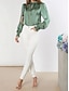 Per donna Camicia Blusa Arricciato Semplice Elegante Attivo Manica Lunga Girocollo Top Regolari All'aperto Ferie Uscire Marrone Verde Estate Primavera