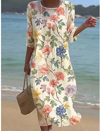 Per donna Abito Midi Abito Camicia Vestito Casual Moda Moderno Quotidiano Spiaggia Weekend Vestibilità regolare Fiore Mezza Manica Colletto a Camicia Blu Giallo Rosa Verde Estate Primavera