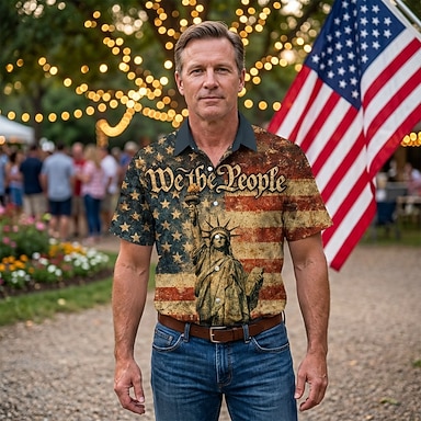 Blusa / Camicia Giornata dell'indipendenza Retrò Vintage Anni '70 Maniche corte per Per uomo Adulti per 4 Luglio Giorno dell'Indipendenza
