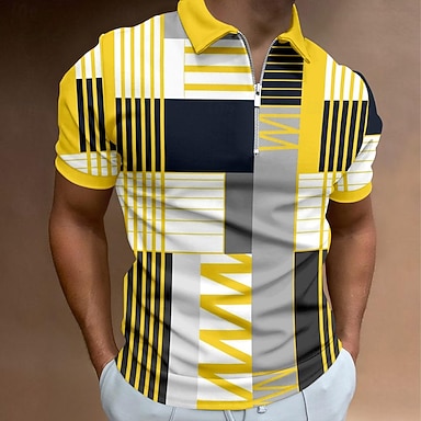 Per uomo Plaid Polo con zip Maglia da golf Manica Corta Magliette polo Camicie con Colletto Vintage Casual Abbigliamento da vacanza Abbigliamento Formale Abbigliamento da festa Stampa 3D Polo con