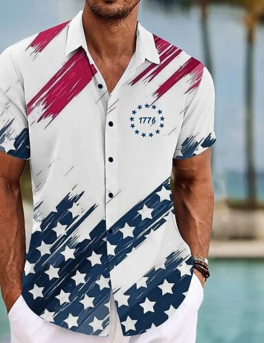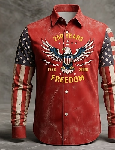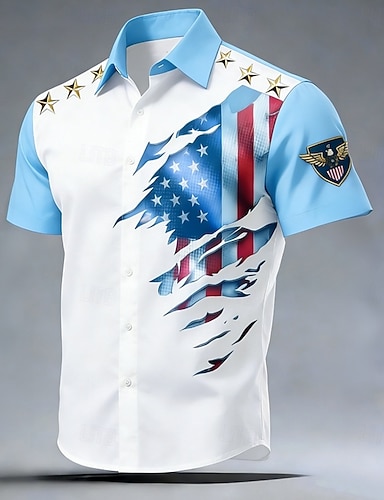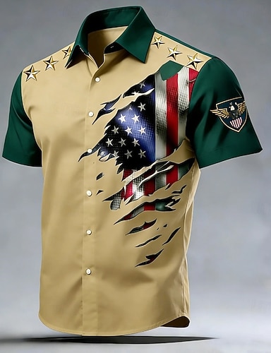 Per uomo 4 luglio, 250° anniversario degli Stati Uniti Aquila Bandiera Americana Camicia Camicia Estiva Camicia con Bottoni Manica Corta Patriotico All'aperto Ferie Estate Primavera Collo ripiegato