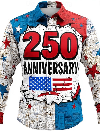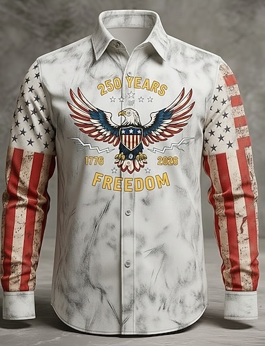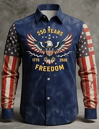 Per uomo 4 luglio, 250° anniversario degli Stati Uniti Bandiera degli Stati Uniti Patriottico Camicia Camicia con Bottoni Manica Lunga Vintage Retrò Ferie Primavera Autunno Collo ripiegato Stampa 3D