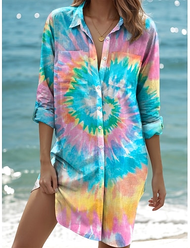 Per donna Pigiama Abbigliamento da Casa Camicia da Notte Moda Casual Comfort Floreale Grafico Animale Allacciato Elastico in vita Quotidiano Casa Spiaggia Manica Lunga Bavero azzurro cielo Estate