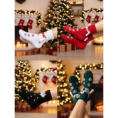 set di calzini natalizi alla caviglia da donna, 4 paia di fiocchi di neve &calzini invernali con renne e pompon, comodi calzini corti lavorati a maglia per le feste, come regalo, per la casa &feste di