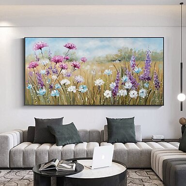 Fatto a mano Dipinto a Olio Dipinta a mano Orizzontale Astratto Paesaggio Floreale / Botanico Moderno Senza telaio interno (senza cornice)