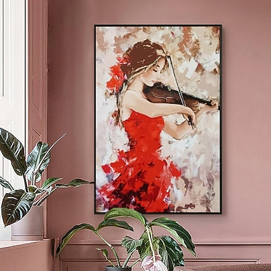 pittura a olio fatta a mano su tela decorazione artistica da parete ragazza moderna che suona il violino per la decorazione domestica pittura arrotolata senza cornice