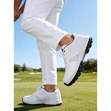 scarpe da golf da uomo bianche ad alte prestazioni, mesh leggero, vestibilità comoda, suola antiscivolo, perfette per il campo da golf e le attività all'aperto