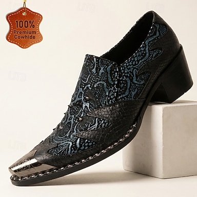 Scarpe eleganti da uomo nere con stampa paisley, punta affusolata, puntale in metallo, stringate, modello Oxford, ideali per matrimoni, banchetti, feste, balli di fine anno, eventi di moda e serate di lusso.