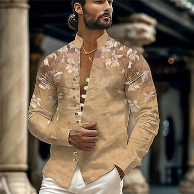 Per uomo Camicia Camicia di lino Camicia popover Camicia Estiva Camicia da Spiaggia Semplice Casuale Vacanza Nero Bianco Rosa Cachi Manica Lunga Colletto alla coreana Estate Primavera Abbigliamento