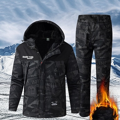 Per uomo Giacca da escursionismo Giacca in Pile Cappotto invernale Giacca imbottita Set termico Inverno Autunno All'aperto Mimetico Calore Termico Impermeabile Antivento Top Nero Verde