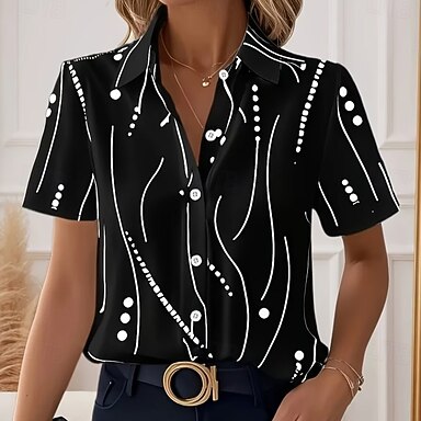 Per donna Maglietta Maglia Henley Arricciato Bottoni Semplice Moda Manica Corta Henley Top corti Casuale Spiaggia Nero Bianco Rosa Vino Grigio Estate