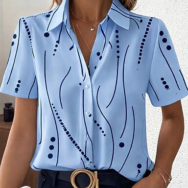 Per donna Maglietta Waffle Top a maglia con texture Maglietta Blocco di colore Stampato Grafico Geometrico Vintage Elegante Classico Manica Corta Girocollo Top lunghi Casuale Quotidiano Blu Bianco